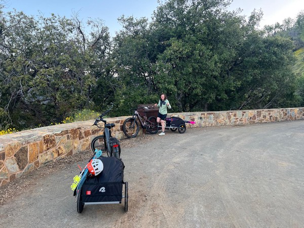 Next up was the issue of the western trailhead being closed. The winter’s storms had washed out the windy road that lead from the foothills up to 7000ft at Wolverton. Sequoia national park was giving some helpful updates, however it seemed that the road was not going to be open in time for our departure. We really didn’t want to walk the 15 miles and 5000ft of elevation gain that was closed. A helpful ranger told us that if were to bike on the road before 7am no one would be the wiser. Getting to Wolverton before 7am seemed reasonable, especially with the aid of an e-bike and trailer. Included in the keyswap was the bike lock keys so Kyle and Jaz could coast down the hill after they arrived at Wolverton.