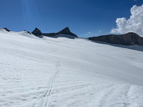 This was a pretty rough day, we were behind, and feeling a bit demoralized. We had carried a few days of extra food to perhaps do an extension on the trip, heading north near Mount Stanford for some extra descents. After falling a bit behind on the main trip we decided that trying to do any extra skiing wasn’t worth it. The sun cups made travel really difficult, and sucked most of the joy of the descents. Given this we decided to just stick with the main path.