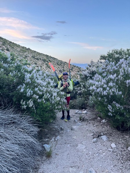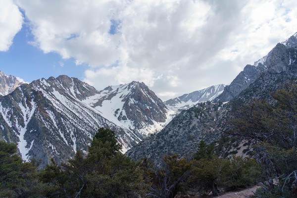 This wasn’t easy as we hoped, it was quite desperate to connect the various ribbons of snow, but we made it work. On the way down we happened to find 3 different mylar balloons that had somehow gotten trapped in the drainage. In the 7 months since this trip, I’ve since found lots of balloons in the backcountry, but never had before this trip, funny how that happens. After getting off the snow we started hiking down the Sheperds pass trail, after 5 days in on the snow and wearing ski boots it was nice to be finally wearing the trail runners we had lugged across the sierra. Save for that rocky ridge on Mount Tyndall, travel at this point had only been on snow and 99% on skins. The trail was actually pretty nice for hiking, only a bit sandy in spots. The trail doesn’t go all the way down Shepherds creek as the walls are far too rocky, so it diverts over Symmes Saddle down to Symmes Creek. This was the worst part of the trail as it was covered in patchy refrozen snow which made travel quite difficult, but we soon made it back onto dry ground. I was pretty gassed at this point as we had been moving for a while.