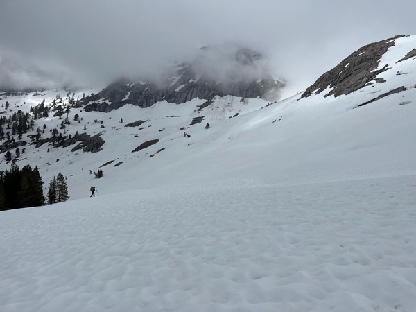 Up until this point we hadn’t seen any one at all save for some cars returning down the “closed road” which was essentially damage free except for two spots where they already had traffic lights controlling the traffic in the one lane sections. We came across a lone skier, who we had thought was just coming down from the pear lake hut. I had tried to say hi and chat but he seemed to be in a rush, for good reason I later learned.